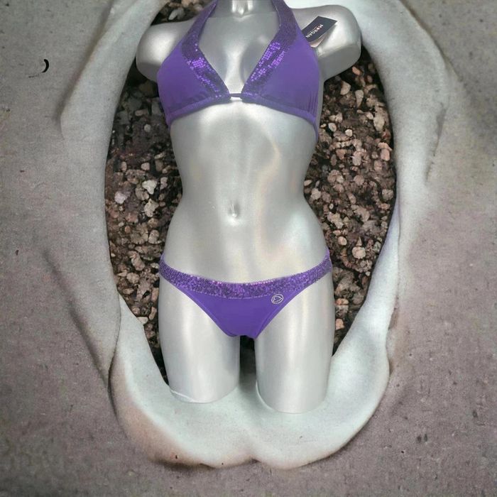 Splendide maillot de bain Morgan Taille XS Neuf avec étiquette Violet avec strass 2 pièces Maillot de bain Bikini Plage