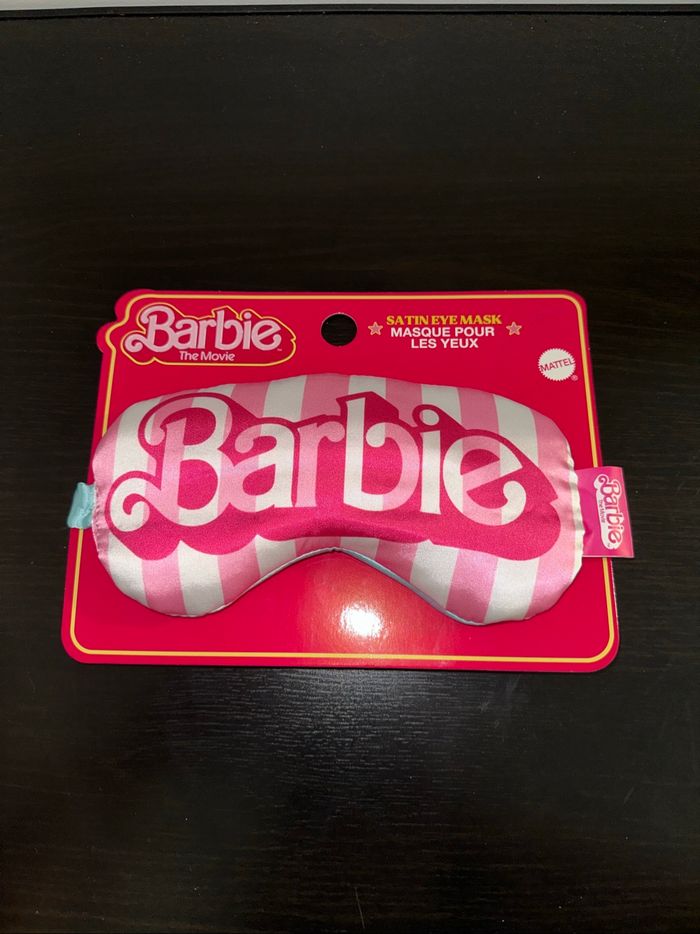 Bandeau masque pour les yeux - Neuf avec étiquette - Rose, blanc et bleu - Barbie, Mattel - Matelassé à l’avant - Élastique à l’arrière - 100% Satin
