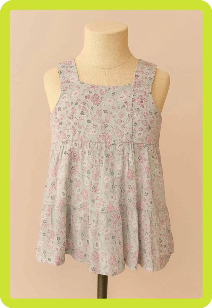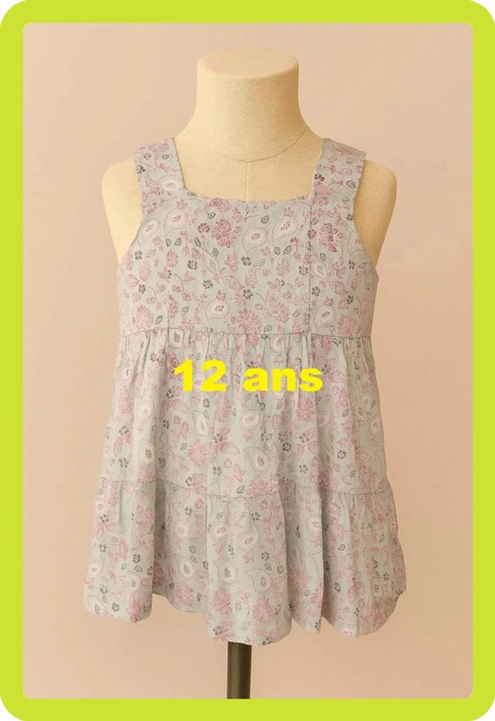 Tunique / Débardeur à volant turquoise clair motif rose violet Poivre Blanc Taille 12 ans