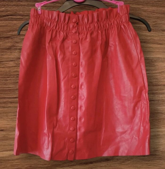 Jupe en simili cuir rouge vintage - photo numéro 1