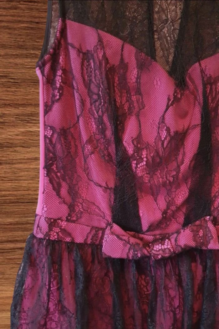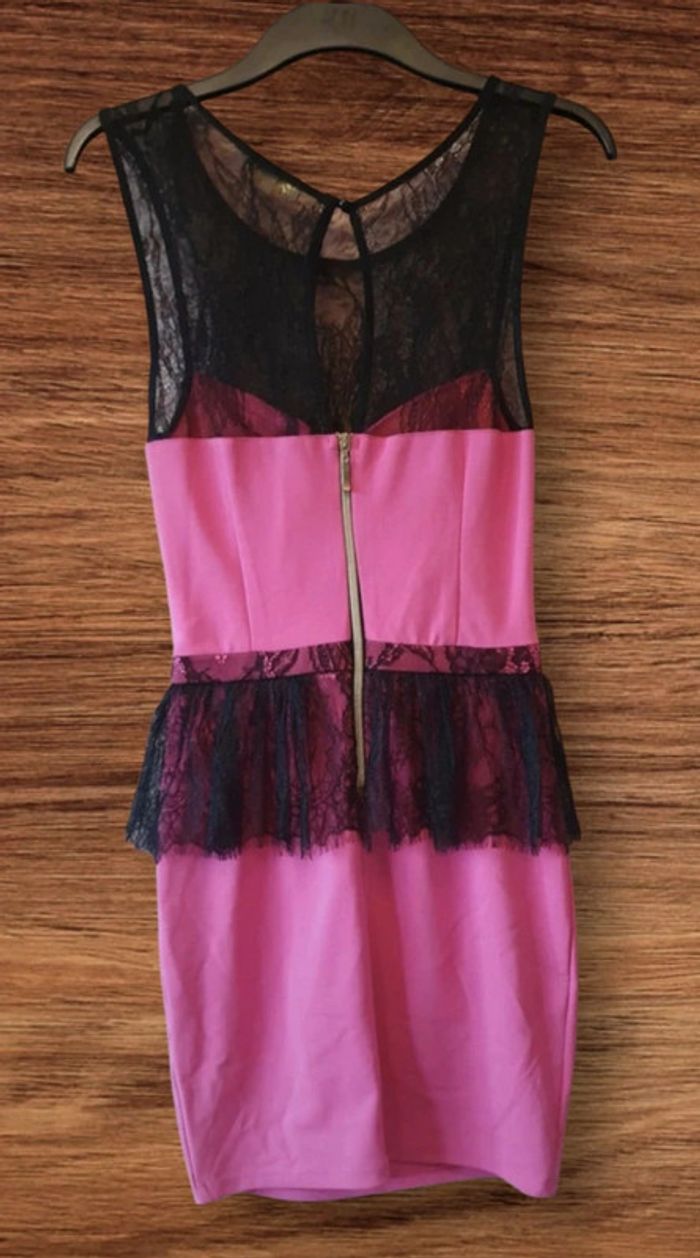 Robe moulante rose fushia et dentelles noires - photo numéro 3
