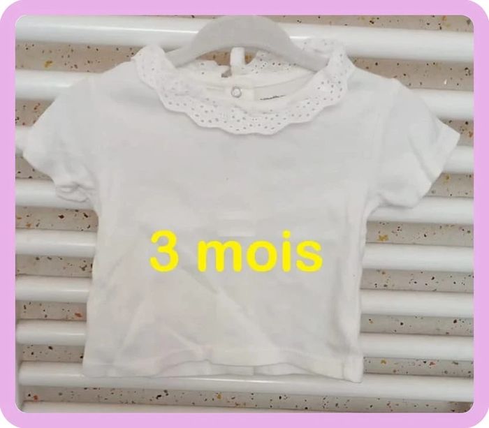 Tee shirt manche courte crème col dentelle Vertbaudet Taille 3 mois - photo numéro 1