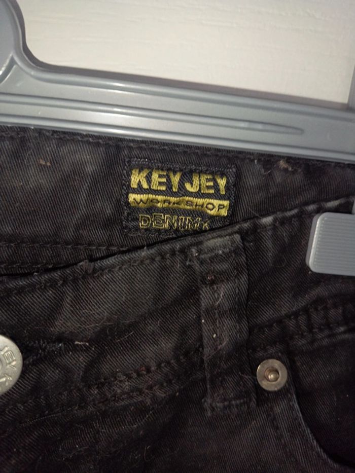 Jeans noir Key Jay taille 38 Composition 100 % coton le noir est encore bien profond contrairement à la photo qui est faite avec un contre-jour. Taille 38 cm longueur 99 cm fermeture par zip