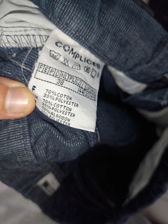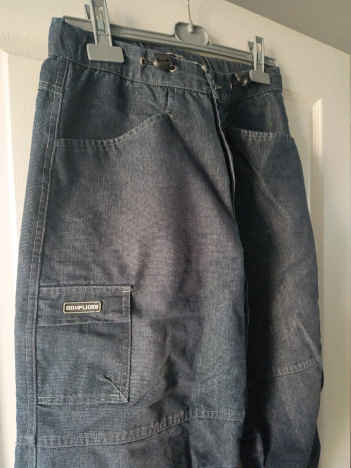 Pantalon cargo complices taille 38 coloris bleu foncé Composition 70 % coton 30 % polyester. Taille 38 cm longueur 110 cm