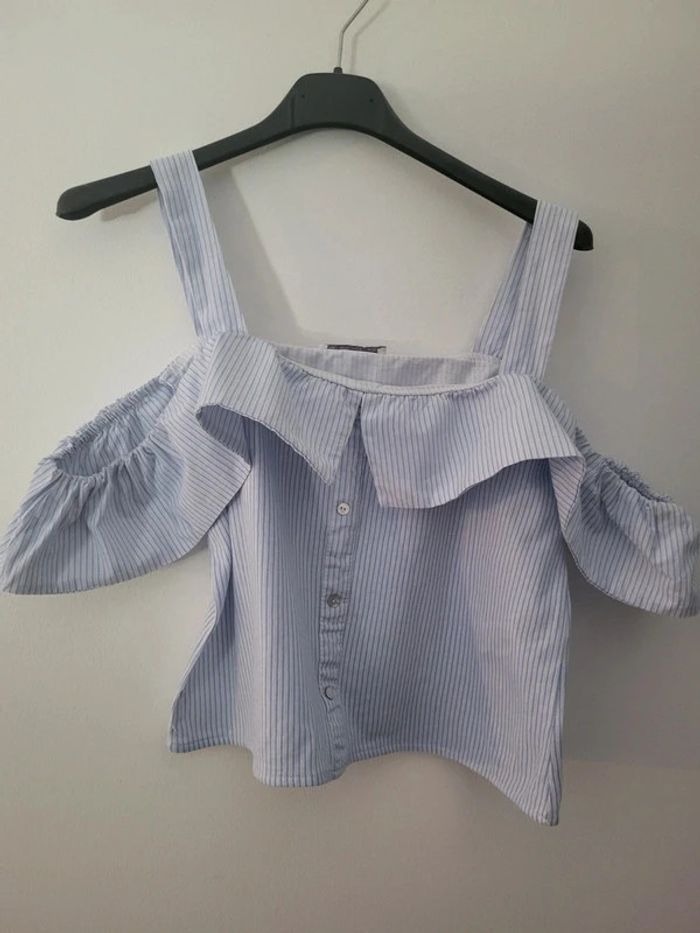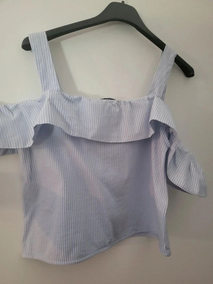 Zara Taille S Joli haut court forme chemise avec Bretelles et forme épaules nues Rayures bleues et blanches Excellent état