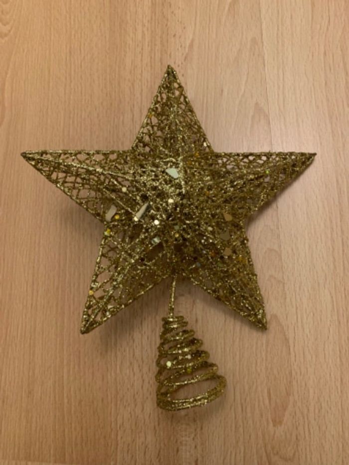 Étoile de sapin de Noël dorée à paillettes pour décoration de sapin de Noël, 20 cm, Doré, 20 x 23x 5 cm Pied un peu tordu