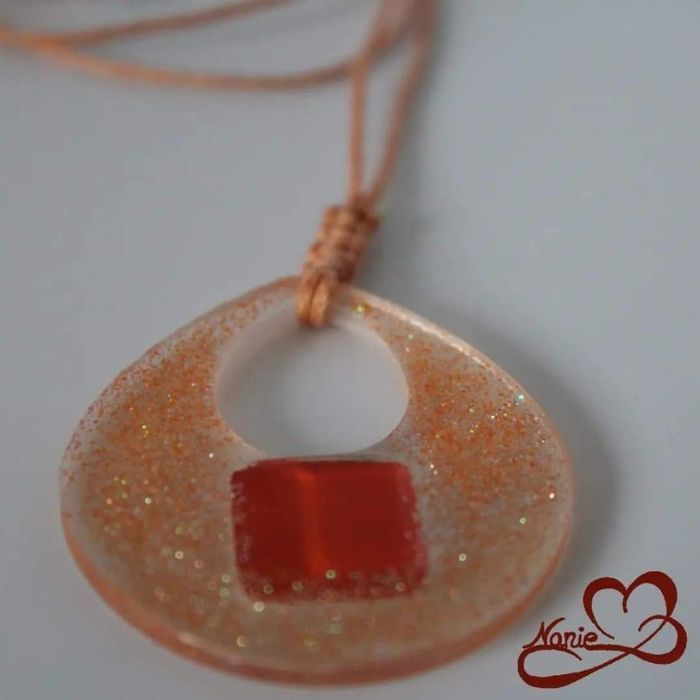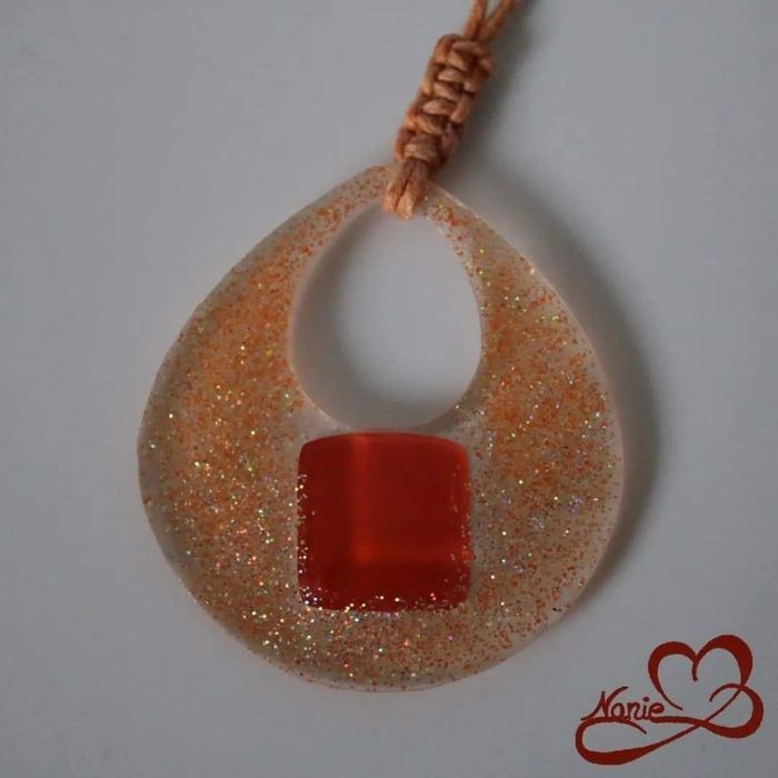 Pendentif en résine avec une mosaïque orange !!
