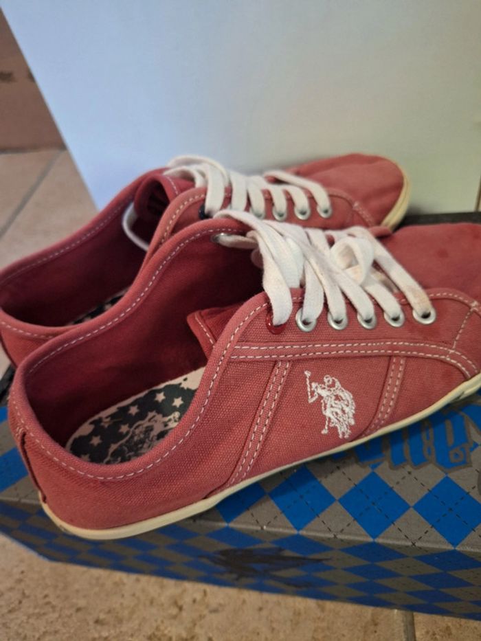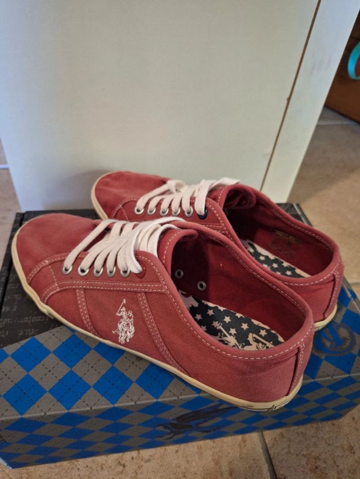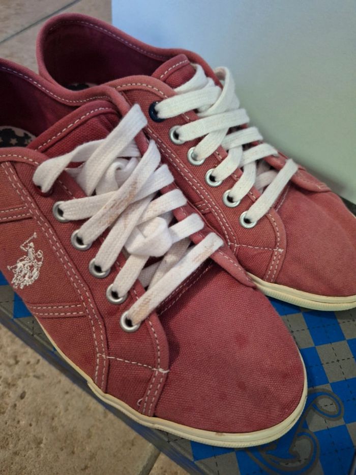 Paire de Basket de la marque U.S. Polo Assn en taille 37. Bon état général. Il y a des tâches sur la chaussure droite comme vous pouvez le voir sur les photos. Et la couleur est un peu passée. N'hésitez pas à me demander d'autres photos 😊.