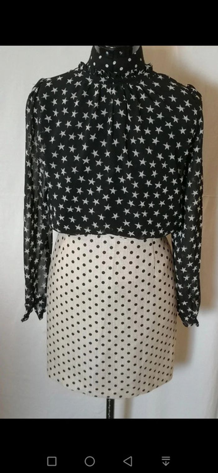 Mini-jupe à pois noir fond crème Taille 40/42 Sintesis - photo numéro 9