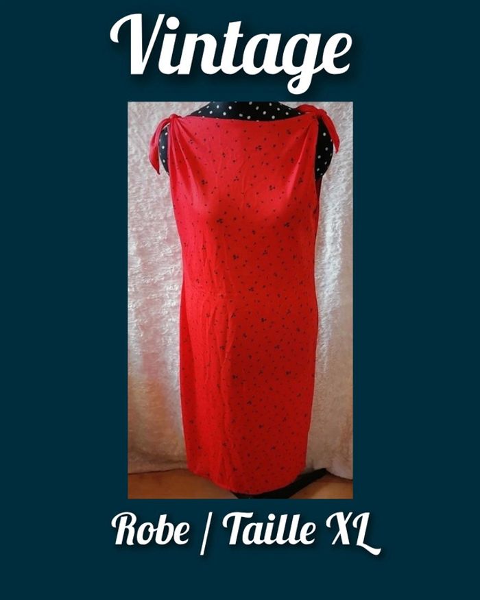Robe d'été nœuds rouge noir Taille XL Vintage - photo numéro 1