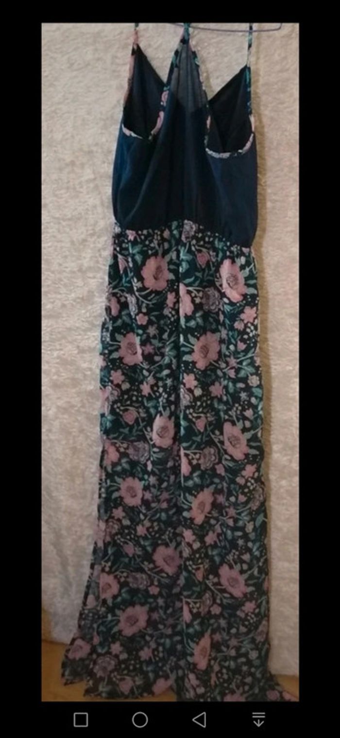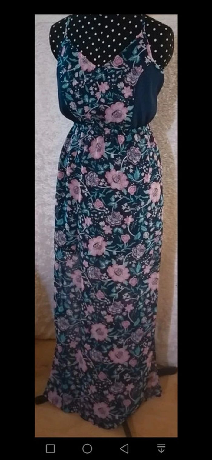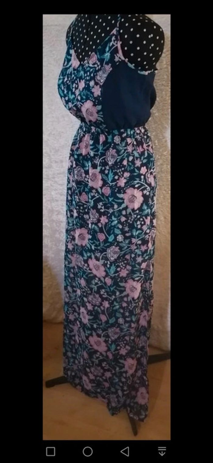 Robe été longue bleu marine et fleurs rose / turquoise Taille M - photo numéro 2