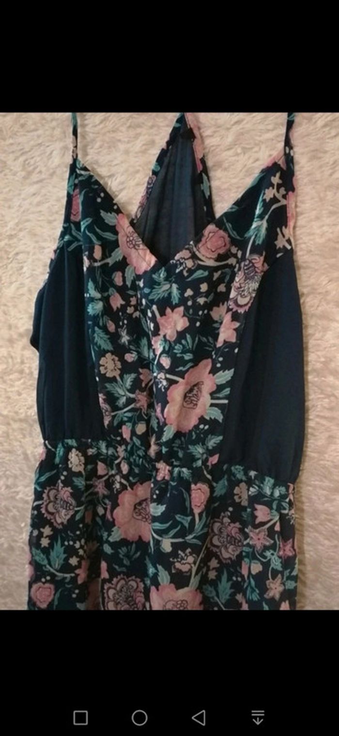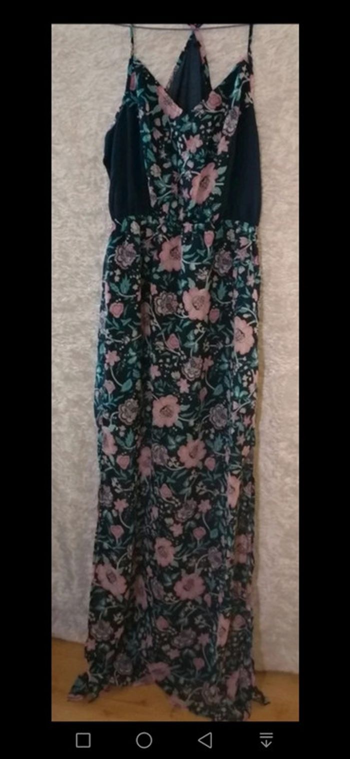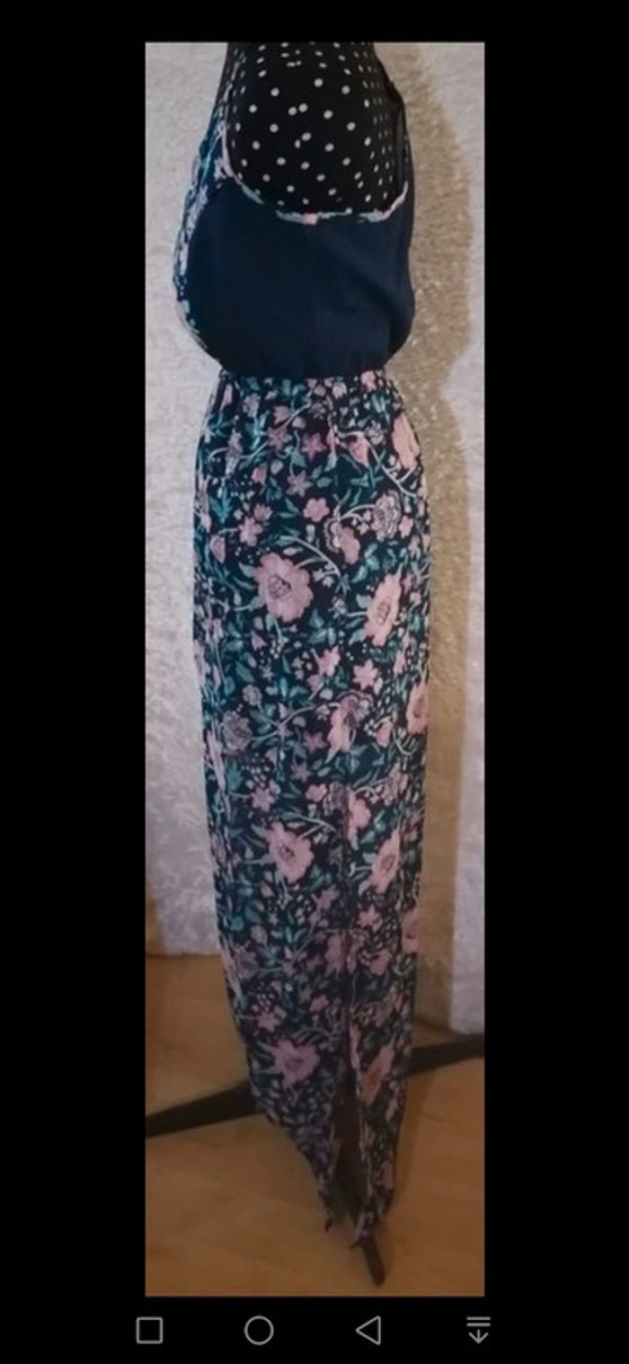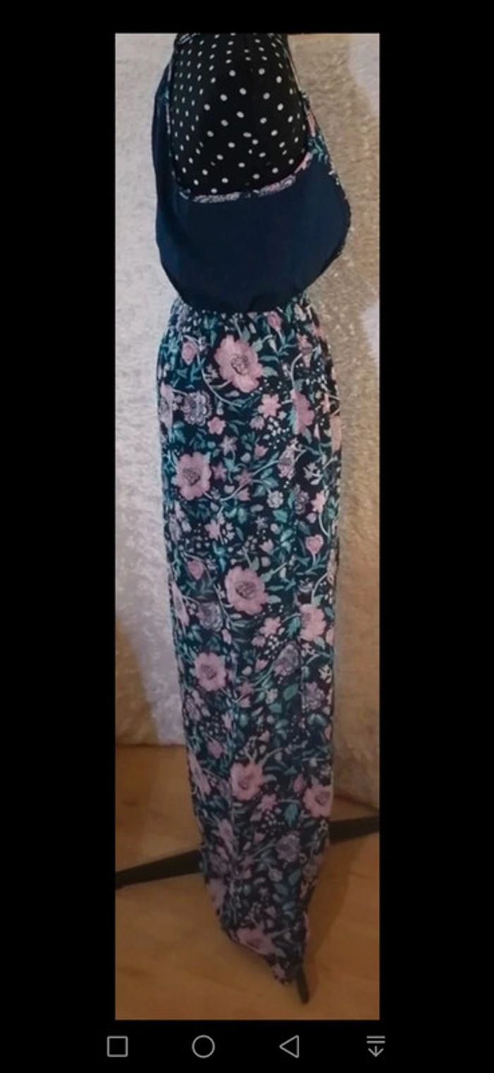 Robe été longue bleu marine et fleurs rose / turquoise Taille M - photo numéro 2
