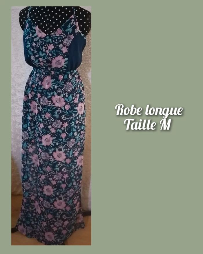 Robe été longue bleu marine et fleurs rose / turquoise Taille M - photo numéro 1