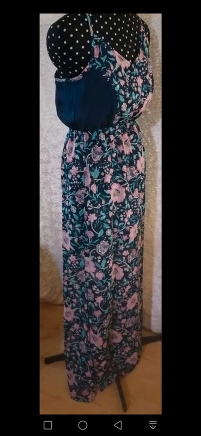Robe été longue bleu marine et fleurs rose / turquoise Taille M - photo numéro 3