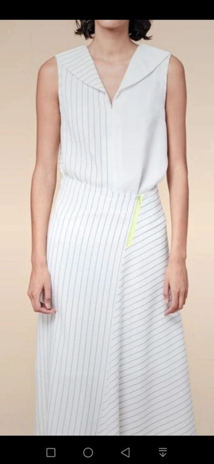 Superbe jupe longue Forme asymétrique, évasée Blanche à rayures noires Fermeture zip jaune fluo Tissu non extensible, taille non élastique Doublure blanche Cop. Copine Taille 38 = M Matière : 97% Lyocel (plante type Lin) 3% Polyester Doublure : 100% Coton Mesures à plat : Longueur : 90 cm Taille : 38 cm Hanches : 52 cm Prix d'achat : 119€ 🌟 Neuve avec étiquette, jamais portée 🌟 #mode #femme #robe #casual #été #jupetaillem #jupetaille38 #copcopine #taille38 #rayure #été #noir #blanc #jaune #fluo #jupechic #jupe #bizs33 #bizs33jupe #bizs33taillem #bizs33taille38 P20N46
