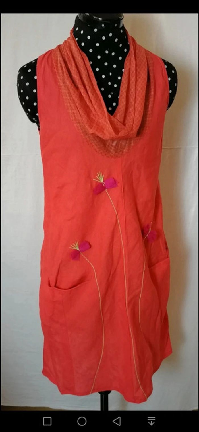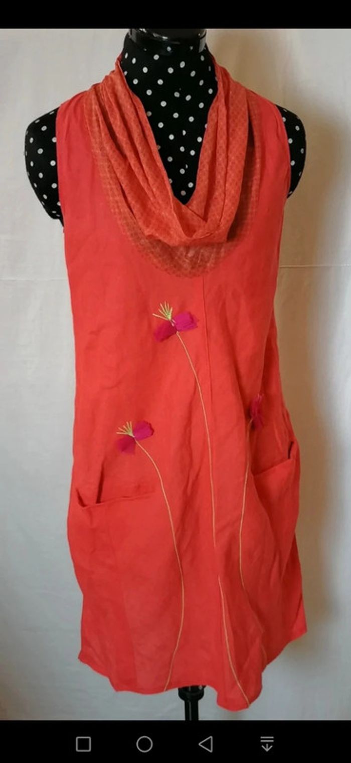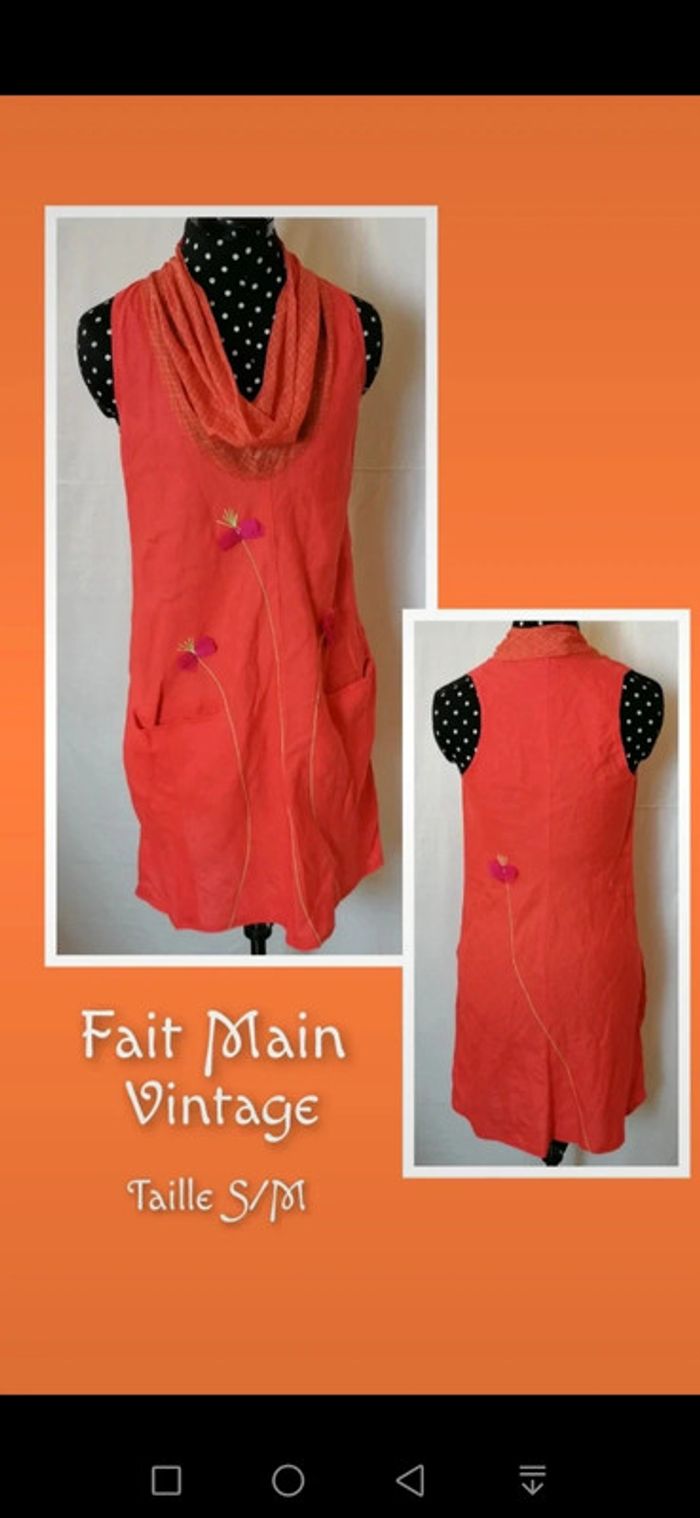 Jolie robe courte, rouge corail Très légère, parfaite pour l'été Col bénitier, 2 poches latérales Pas de fermeture, s'enfile simplement Tissu non strech Pas de doublure La robe est fait main, il n'y a pas d'étiquette Taille : convient à un S/M Composition : je pense à du lin ou coto Mesures à plat : Longueur : 90 cm Aisselles : 46 cm Taille : 48 cm Hanches : 52 cm Prix d'achat : 75€ 🌟 Vintage mais en très bon état général 🌟 🎁🎁🎁 Promo 1€ offert (en article) par tranche de 5€, voir ma description "à propos" pour lire les détails 🎁🎁🎁 #dress #mode #femme #robe #casual #été #printemps #lin #enlin #robe #faitmain #handmade #vintage #corail #orange #hippie #hippiechic #robetailles #robetaille36 #taille38 #casual #robechic #robe #bizs33 #bizs33robe #bizs33taillem #bizs33tailles P11N69