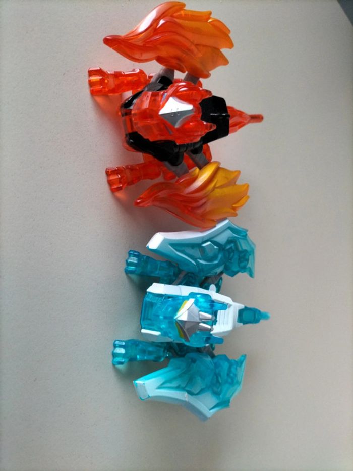 deux figurines Rescue Mini-Con : Wingblaze (le rouge) et Freezer Burn (le bleu).