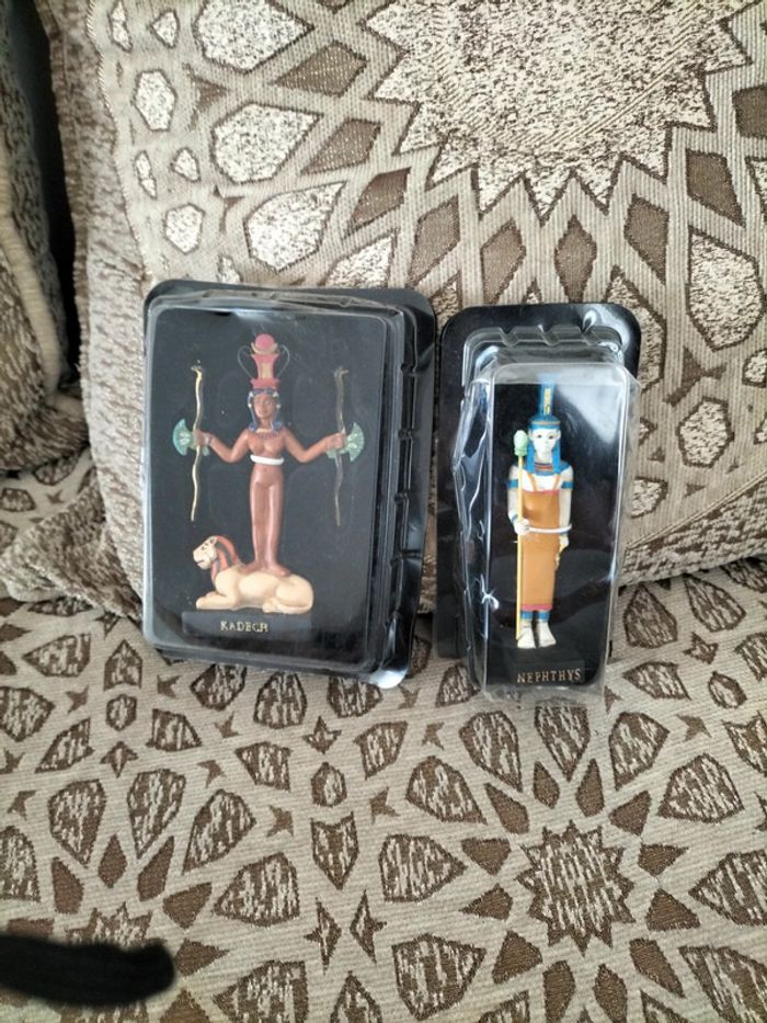 Il y a Kadech ( défaut main recollé)et Nephthys( défauts main et les chevilles). Sinon les figurines n'ont pas de trace spéciale.