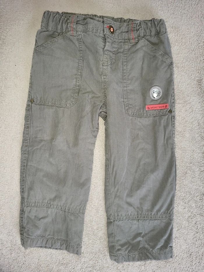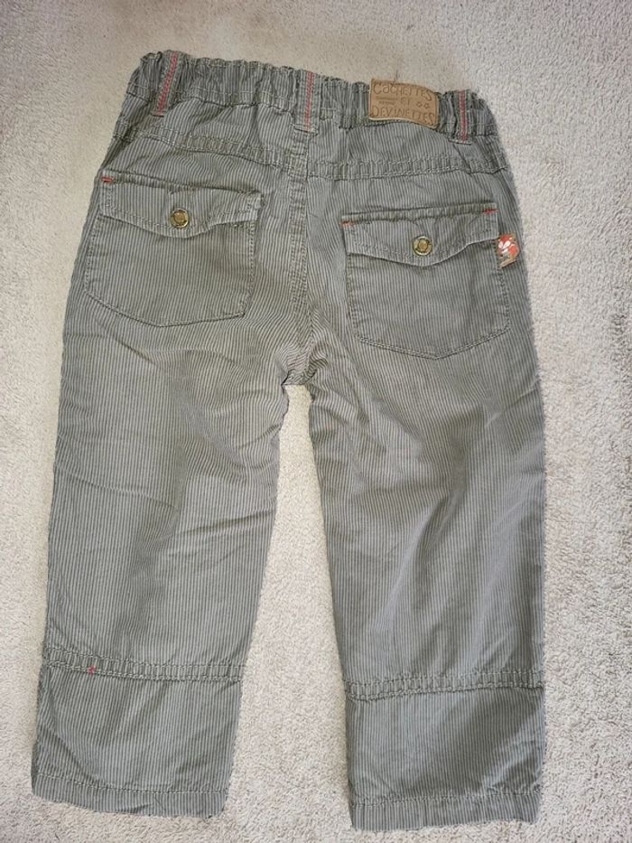 Pantalon plutôt léger Sergent Major Kaki à fines rayures Motif renard et raton laveur #virgy61garcon18mois