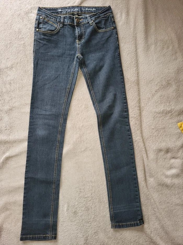 Jean Super skinny strech bleu foncé tirant sur le noir Taille 40 mais correspond plus à un 38 -40 Mesures ceinture a plat 35cm Longueur entrejambe /bas 84cm #virgy61pantalons
