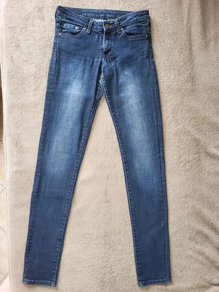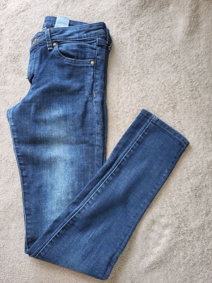 Jean strech bleu Denim Super skinny 27/32 70% coton 28% polyester 2% elasthanne Mesures ceinture a plat 35cm Longueur entrejambe /bas 82cm Traces d'usure à l'entrejambe (voir photo) #virgy61pantalons