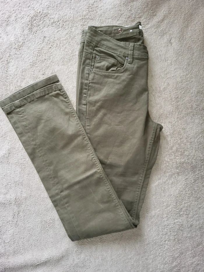 Jean strech kaki 98% coton 2% elasthanne Mesures ceinture a plat 33cm Longueur entrejambe /bas 78,5cm #virgy61pantalons