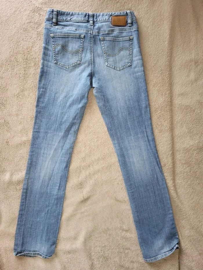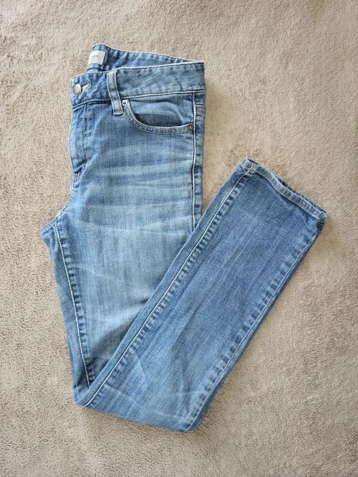 Jean strech bleu 99% coton 1% elasthanne Mesures ceinture a plat 34,5cm Longueur entrejambe /bas 73cm Légère tâche au niveau de la cuisse droite (voir photo) #virgy61pantalons