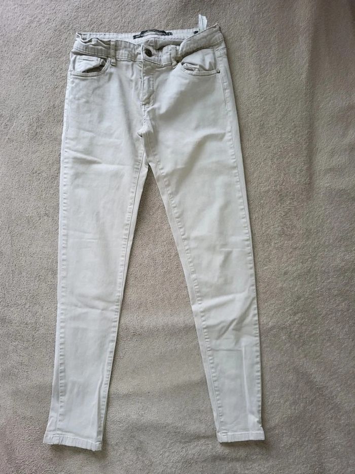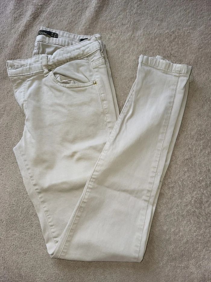 Jean strech beige Slim fit 97% coton 3% elasthanne Mesures ceinture a plat 32cm Longueur entrejambe /bas 71cm Fermeture en bas des jambes A noter une tâche sur la cuisse gauche( voir photo) #virgy61pantalons