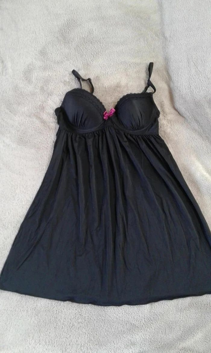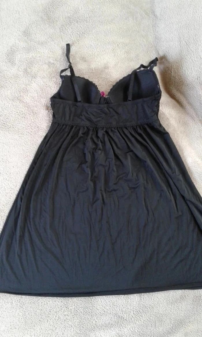 Nuisette noire avec petit noeud fuschia Mesures aisselles a aisselle 32cm Longueur a partir des aisselles 55cm Bretelles réglables #virgy61lingerie