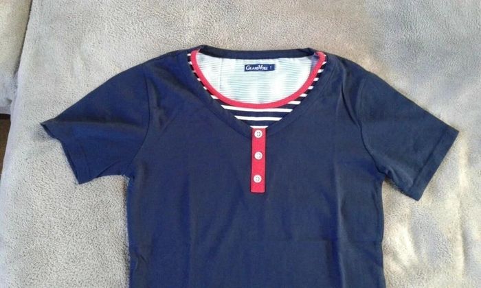 T-shirt manches courte bleu Grand voile Mesures aisselle a aisselle 41cm Hauteur 61cm #virgy61tops