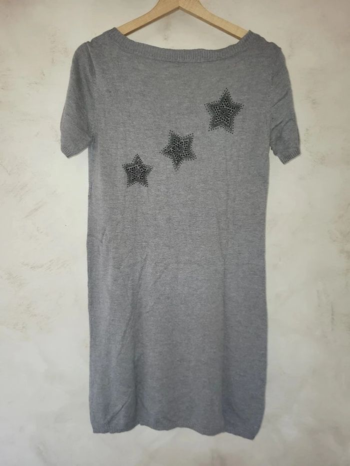 Robe Pull grise Etam manches courtes Motifs étoiles 40% modal 30% coton 30% nylon Mesures aisselle a aisselle 45cm Longueur 86cm #virgy61robes