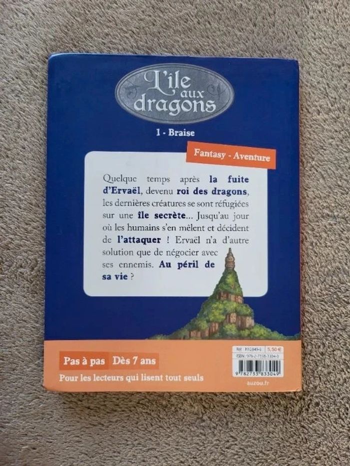 Tome 1 de la série L'île aux dragons "Braise" Éric Sanvoisin et Jérémie Fleury 60 pages Fantastique- Aventure Auzou romans Collection Pas à pas Dès 7 ans Couverture légèrement abîmée #virgy61livresenfants #virgy61livresados