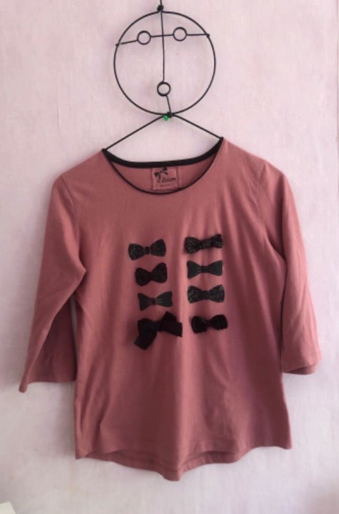 Haut pyjama rose motif noeuds noirs Coton et polyester