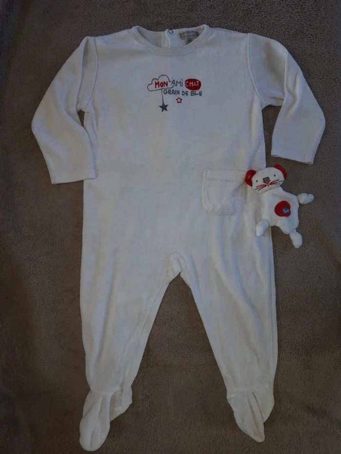 Pyjama blanc mixte avec petit doudou Porté plusieurs fois #virgy61fille12mois #virgy61garcon12mois