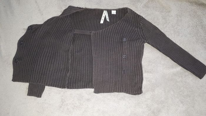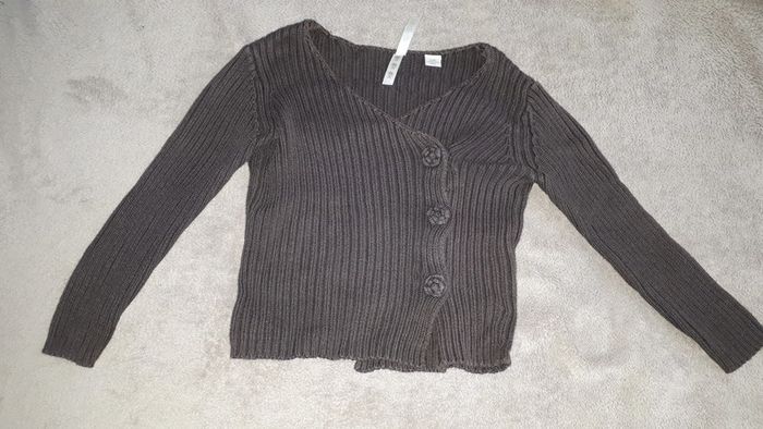 Gilet marron cache coeur okaidi Fermeture pressions Col V #virgy61fille3ans