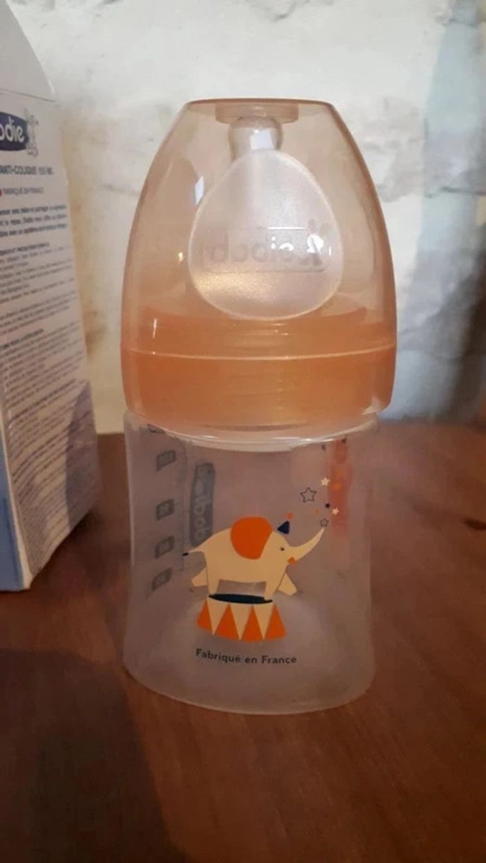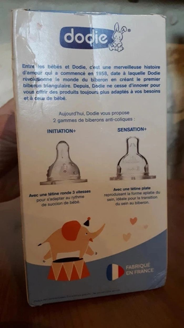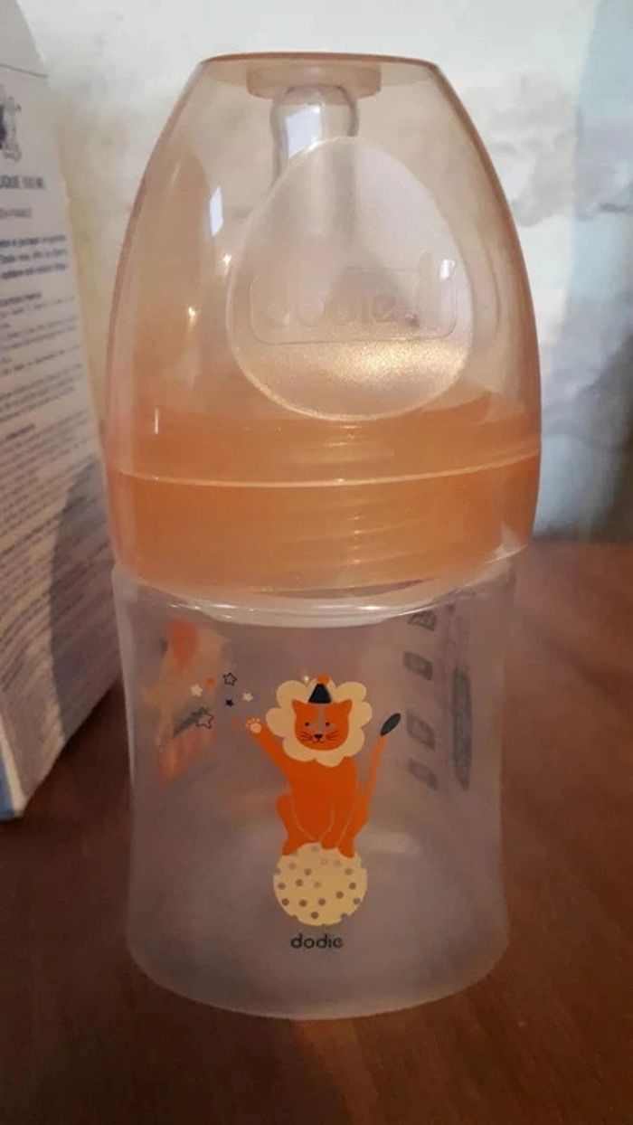 Biberon anti-colique Dodie 150ml orange motif cirque Neuf jamais utilisé mais boîte abîmée Tétine ronde 0-6mois debit 1 (initiation +) #virgy61puericulture