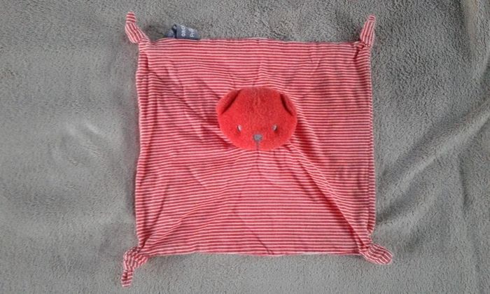 Doudou ours rouge rayures rouges et blanches Orchestra prémaman A été lavé quelques fois Dimension 26×24cm #virgy61joueteveil #virgy61puericulture