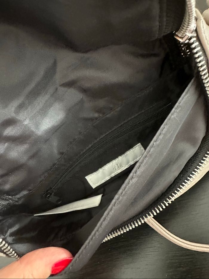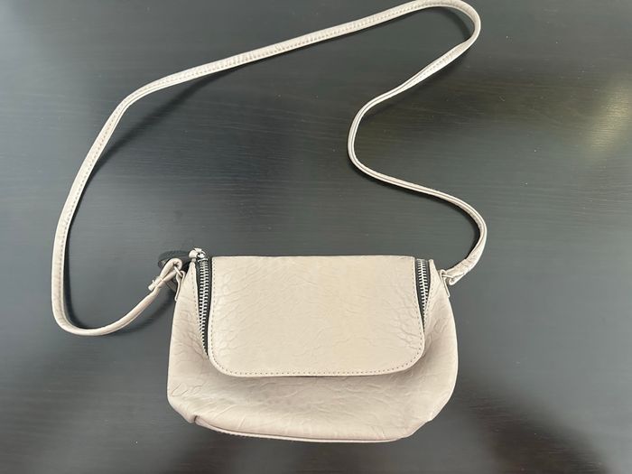 Sac bandoulière - Excellent état - Marque H&M - Gris taupe - Se ferme avec un zip - Bandoulière - Doublure intérieure Dimensions: - 21cm de large - 15cm de haut - 6cm de profondeur