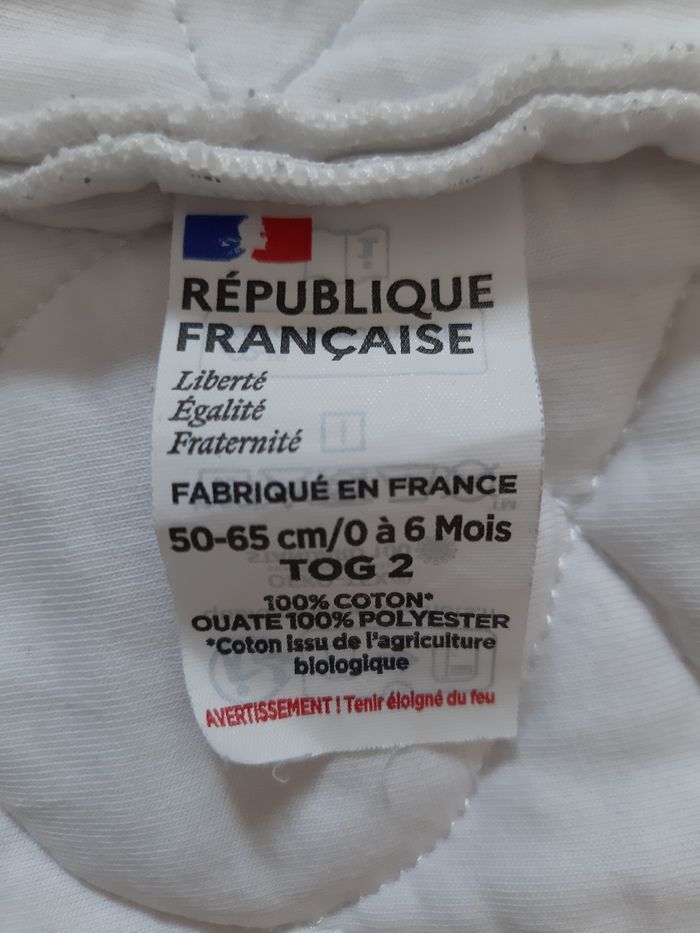 gigoteuse 1000 premiers jours. Taille 0-6 mois. TOG 2 100% coton bio ouatinée, plutôt mi-saison ou nuits fraîches d'été fabriquée en France En très bon état.