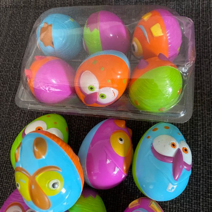 16 oeufs en plastique à garnir pour Pâques Se séparent en deux Les visages peuvent être un peu usés mais sinon aucun n'est cassé ni même fêlé