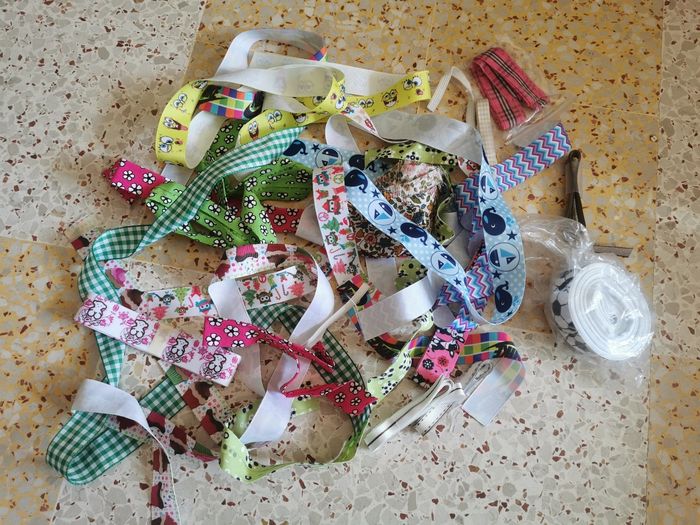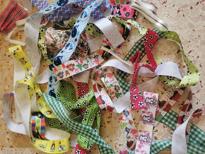 Bonjour je vend ce gros lot de rubans en tissus pour diverses créations de loisirs créatifs, certains ont perdus plusieurs cm d'autres sont neufs encore attachés. Voir photos vous achetez ce que vous voyez Je ne dissocie pas le lot pour le moment Merci