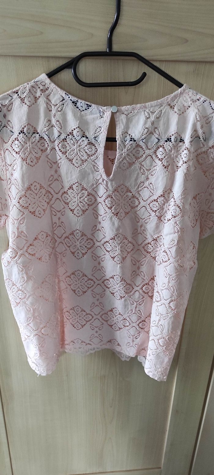 Haut manches courtes dentelle rose pâle Kiabi 36 neuf - photo numéro 4