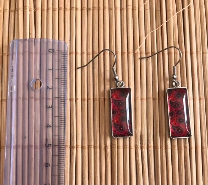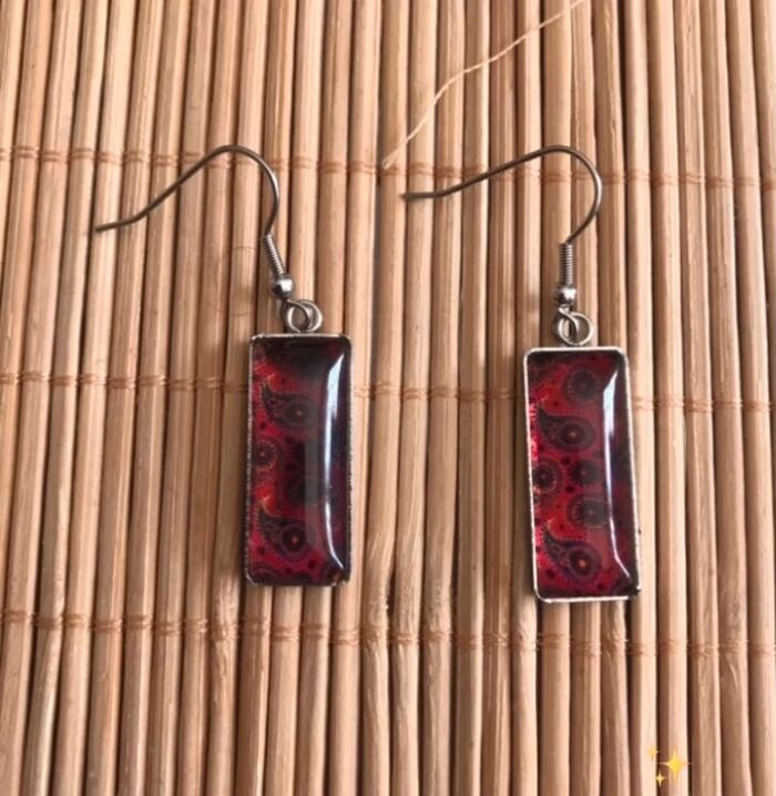 Bonjour Boucles d’oreilles rectangulaires de style ethnique. Métal argenté et motifs rouges. En excellent état puisque jamais portées. #carinelpcbijoux #carinelpcbouclesdoreilles