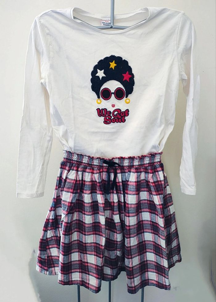 10 ans ensemble tape a l oeil teeshirt et jupe