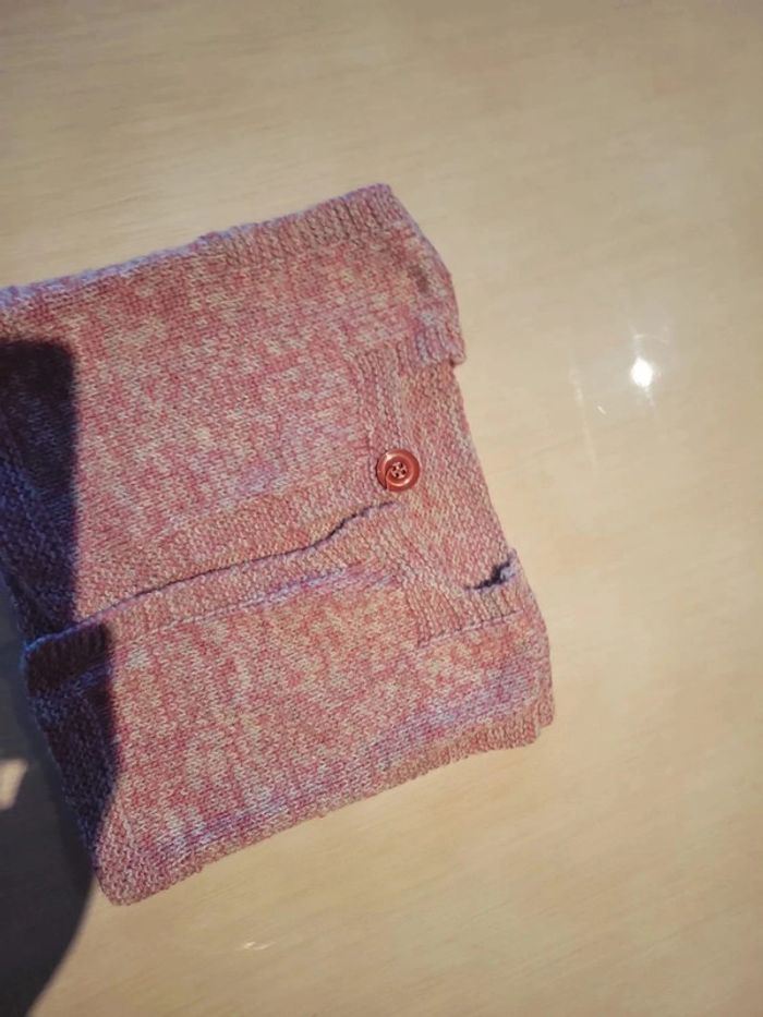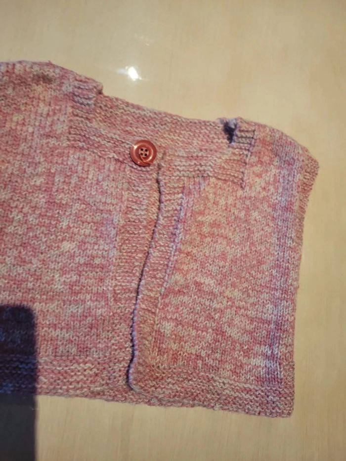 Veste manches courtes taille 9 mois Fait main & maison ! Rose chinée gris. Très bon état #33coco_fille9mois