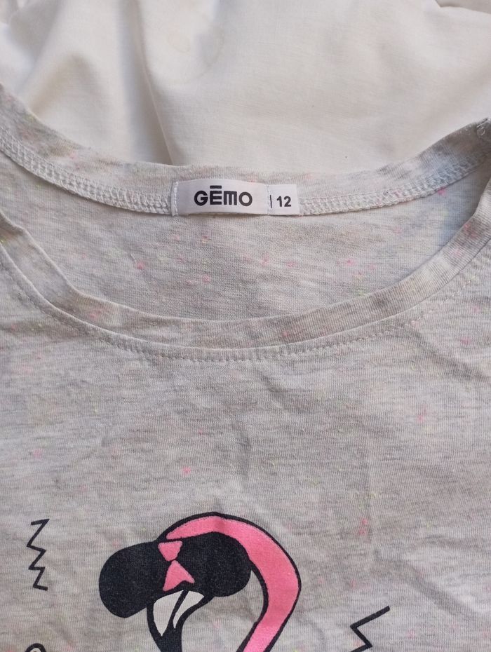 Tee shirt manches courtes gris flamand rose 12 ans Gémo 3€ neuf - photo numéro 3