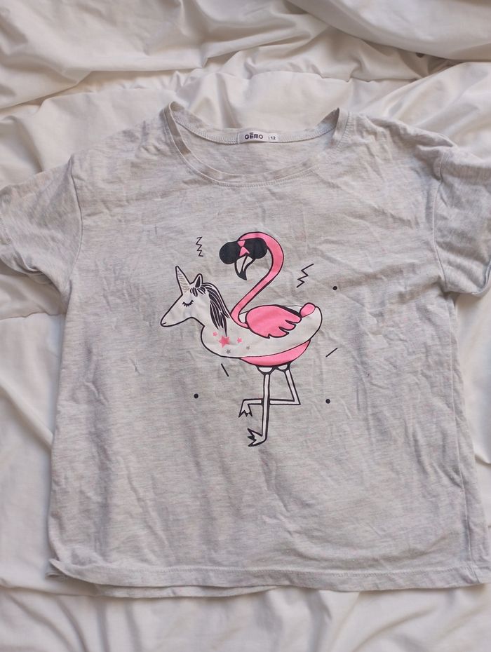 Tee shirt manches courtes gris flamand rose 12 ans Gémo 3€ neuf - photo numéro 1
