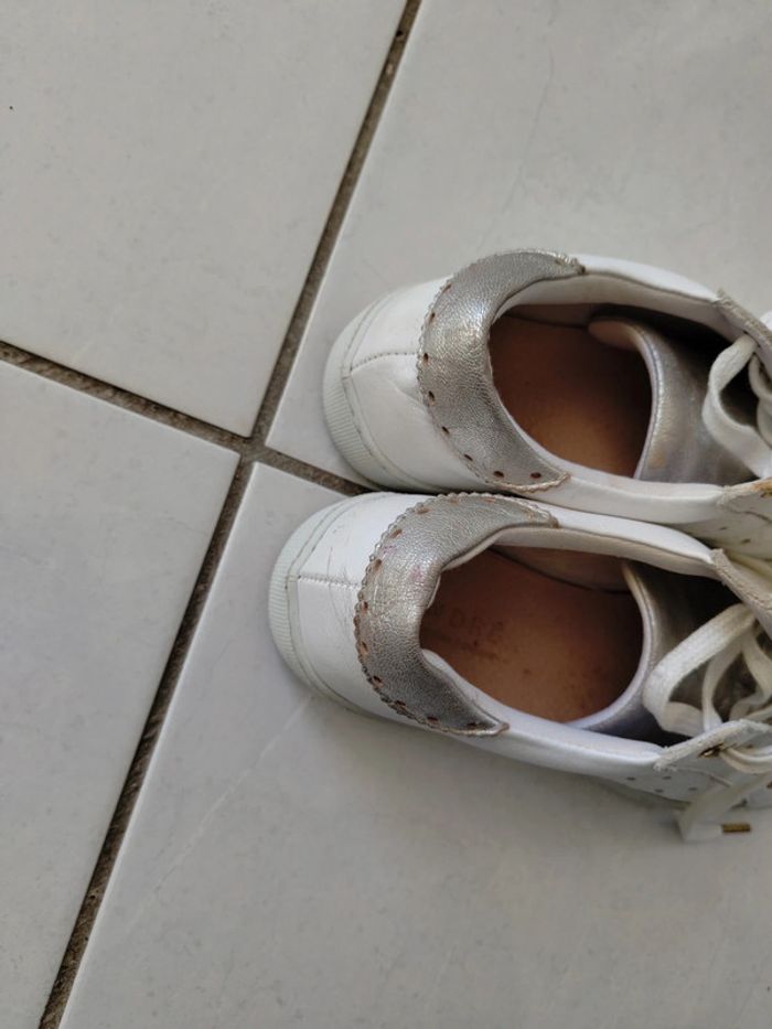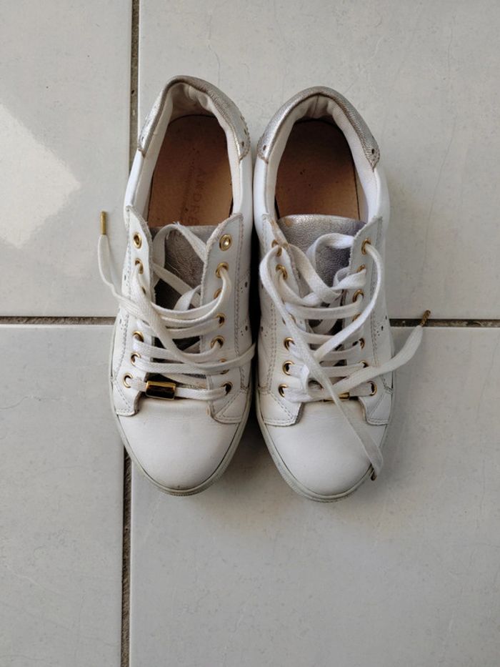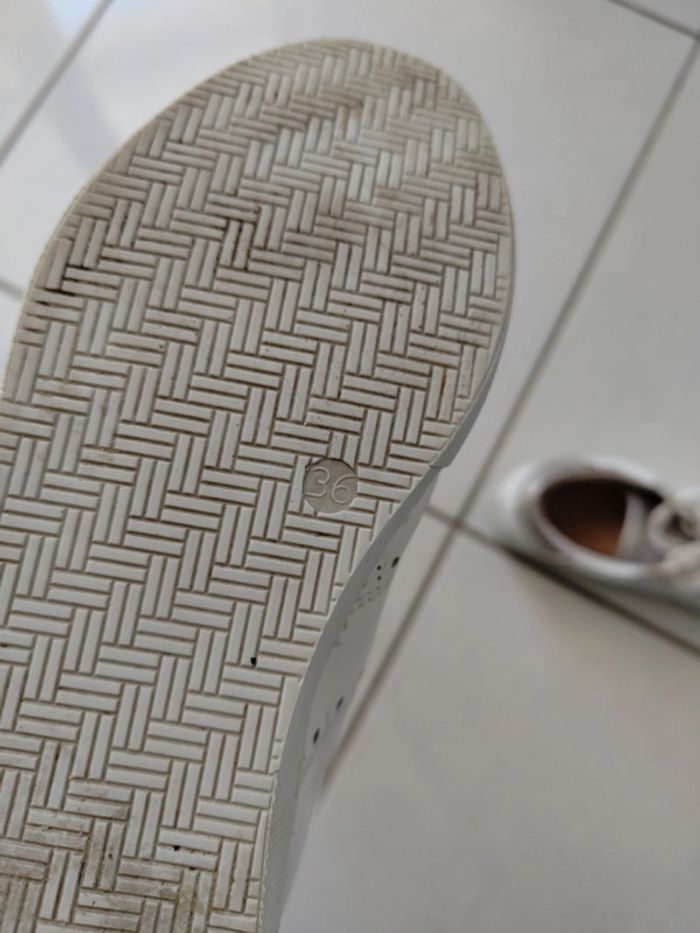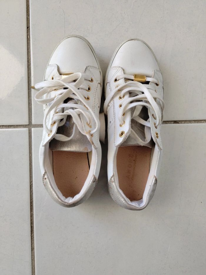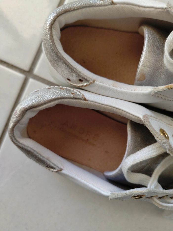 Chaussures ANDRÉ en cuir blanc et argenté 36 en excellent état Veuillez consulter mes autres articles je fais un grand tri