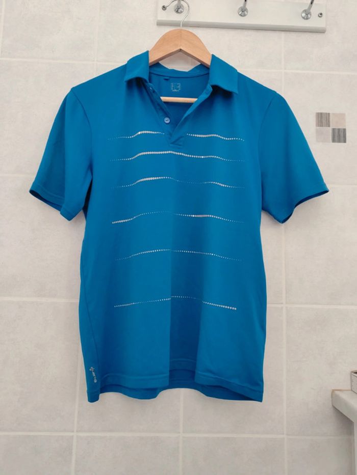 Polo de tennis en polyester bleu taille S comme neuf Veuillez consulter mes autres articles je fais un grand tri