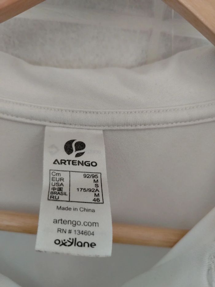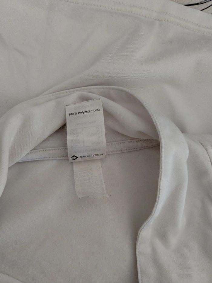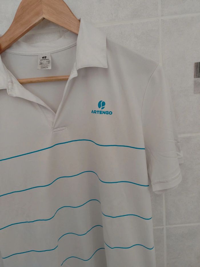 Polo de tennis en polyester blanc et bleu taille M en excellent état Veuillez consulter mes autres articles je fais un grand tri